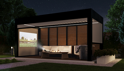 Замена кинотеатра. Превратите беседку или веранду в личный кинотеатр с любимыми фильмами. Полотно системы можно использовать как экран для проектора.