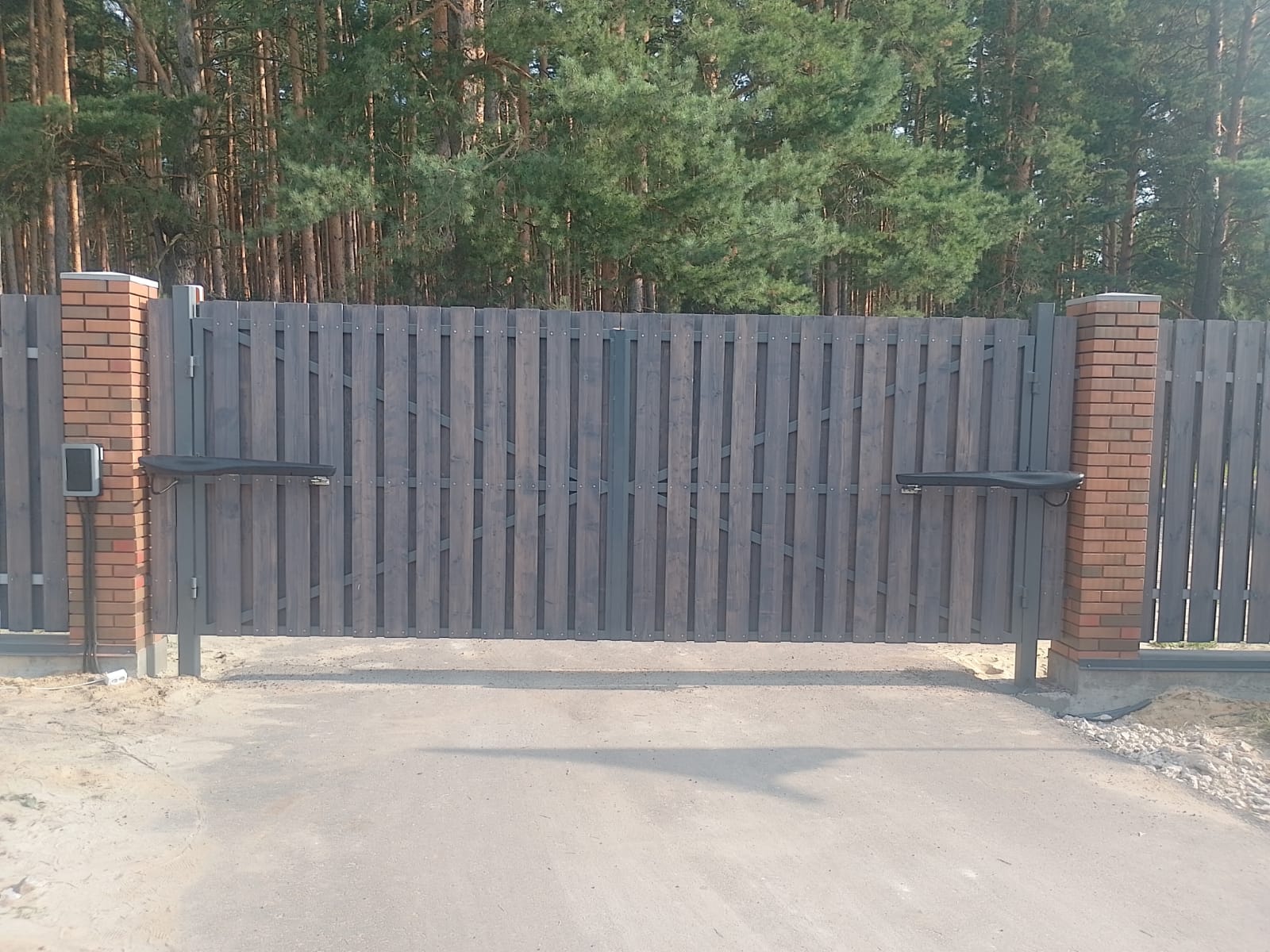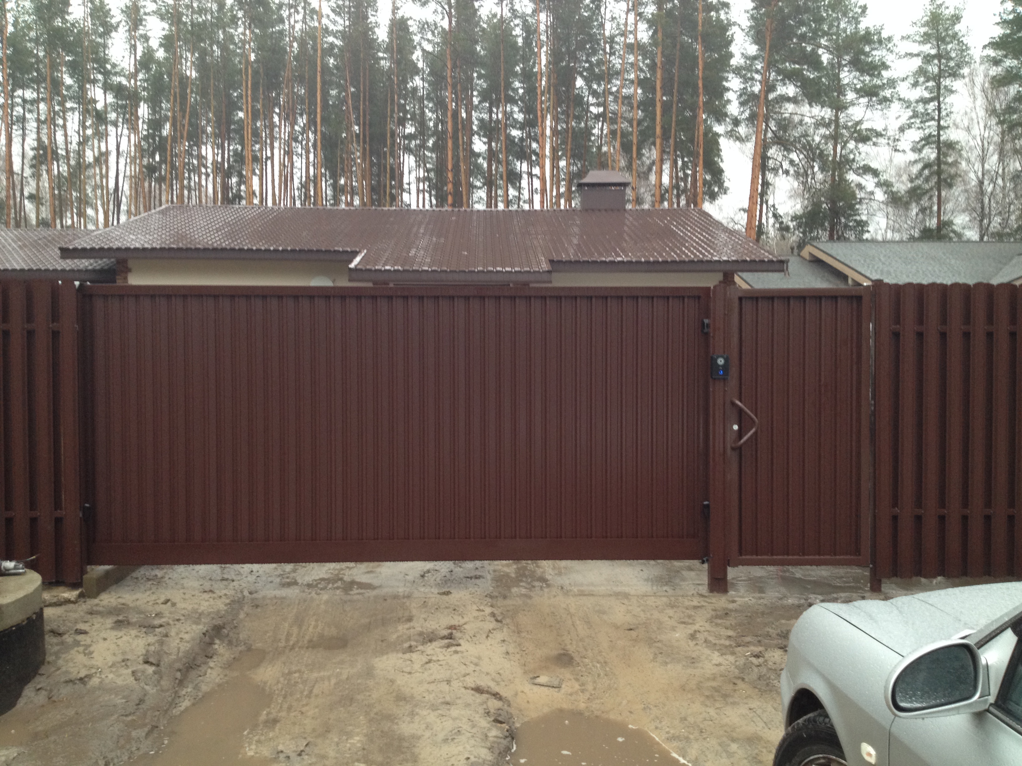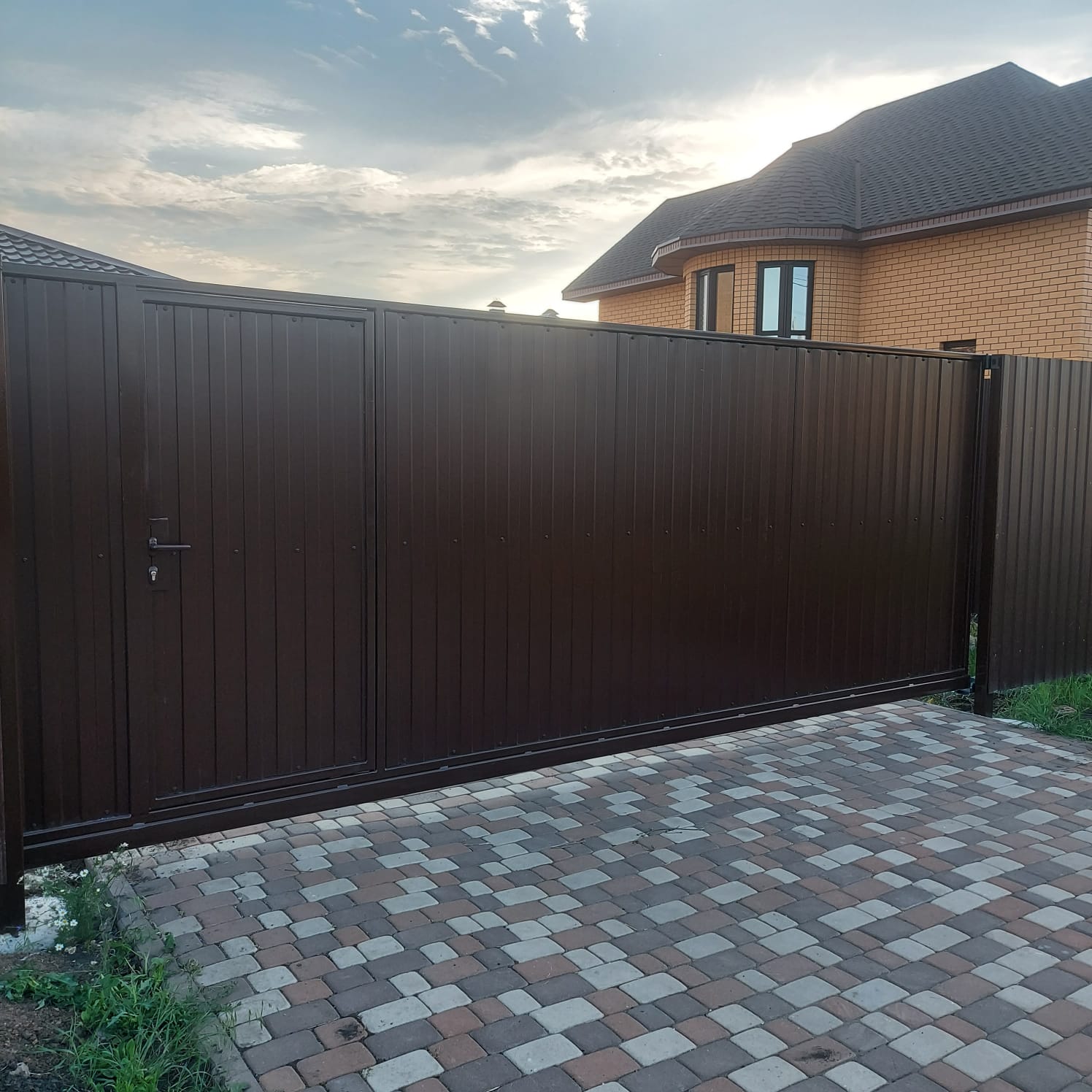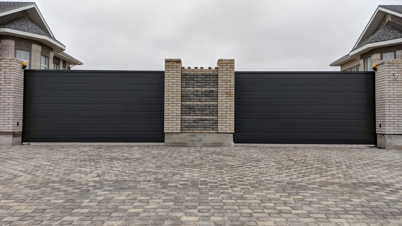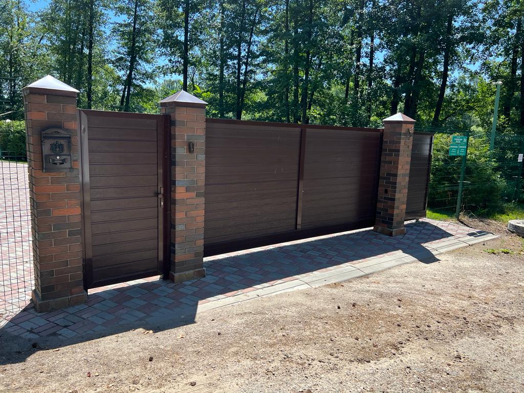 Откатные ворота — идеальное решение для участков с ограниченным пространством. Они плавно сдвигаются в сторону вдоль забора, не требуя дополнительного места для распахивания.