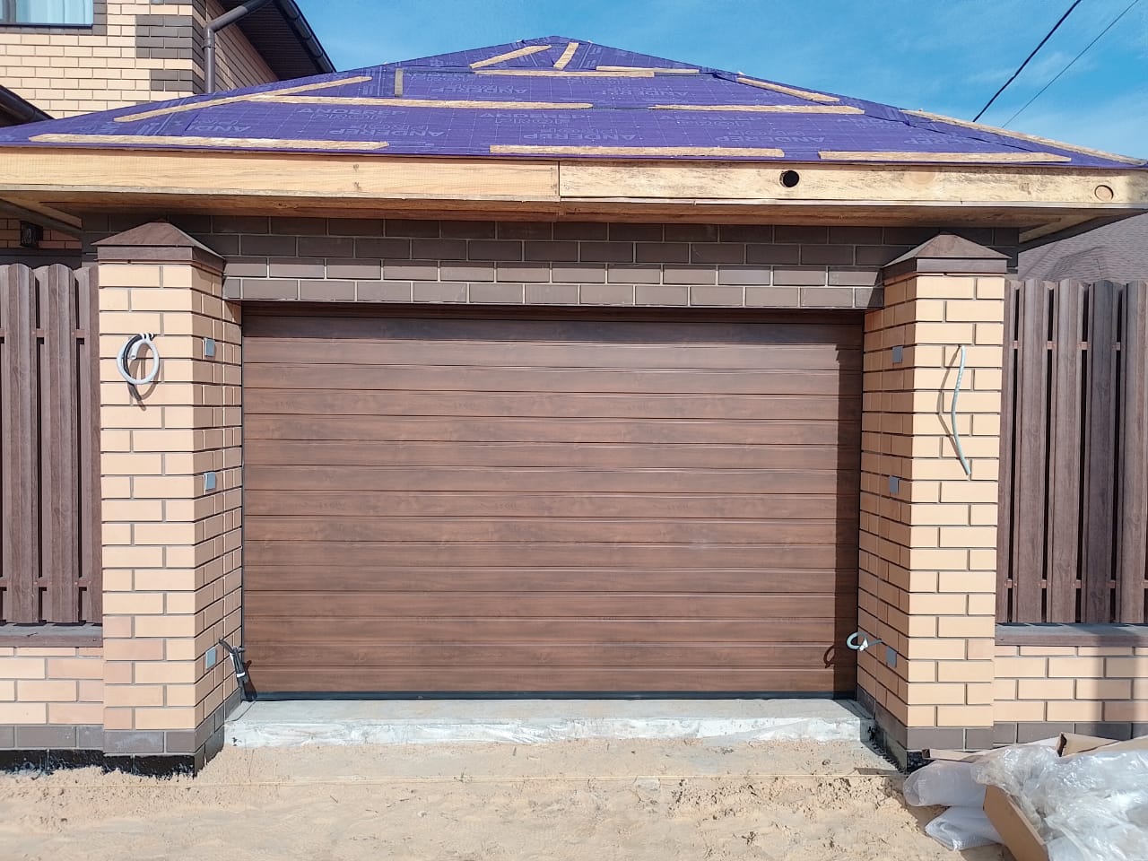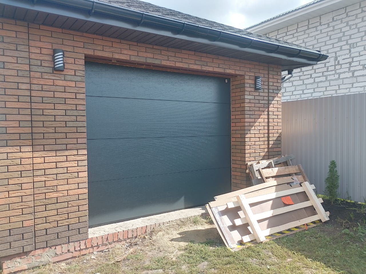 Теплые ворота из сэндвич-панелей защищают от холода, как кирпичная стена толщиной 50-60 см. Для их открытия не требуется дополнительного пространства - полотно размещается под перекрытием гаража.